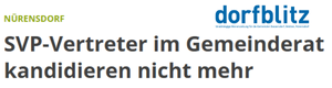 Recently, on 25 September 2025, Swiss newspaper ‘Dorfblitz’ published an article titled “SVP Representatives on the Municipal Council Are No Longer Running for Office” Click here to read the article. The article announced the resignation of Mayor Christoph Bösel after 20 years of service on the municipal council. Alongside him, Social Services Director Edith Betschart is also stepping down after completing two terms. This development places additional pressure on the Swiss People’s Party (SVP) to defend its positions in the upcoming elections in Nürensdorf.