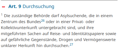 Let’s see what does Art. 9 AsylG of Switzerland says,