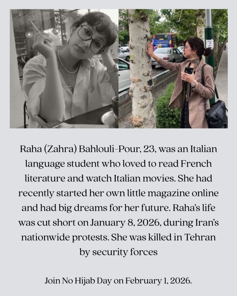 According to widely circulated tributes, Raha was an Italian-language student who loved French literature and Italian cinema. She had recently launched a small online magazine and dreamed of a future built on creativity and freedom. On January 8, 2026, her life ended during demonstrations when she was reportedly killed by security forces.