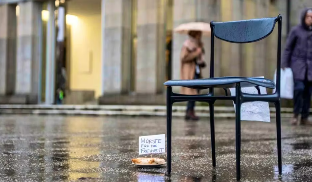 After her conviction, Ameti did not show up in person at the Kunsthaus in Zurich. Instead, she left an empty chair and a small display of sausages with a sign reading “Würste für die Freiheit” (“Sausages for Freedom”). The installation was a silent, provocative statement a symbolic protest on freedom and public attention designed to speak louder than her presence. She did not stay, the items were meant to be seen, interpreted, and reported, leaving the media and public to wonder at the meaning.