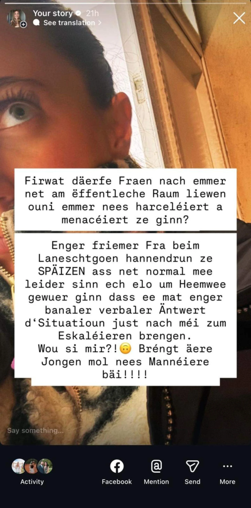 The incident involving Liz Braz has become a powerful reminder that street harassment and intimidation are not abstract issues. They are lived realities. While this particular case involved a Luxembourgish-speaking local, Braz herself has cautioned against political instrumentalisation. The issue, she insists, is broader than nationality, it is about respect, accountability and social norms.