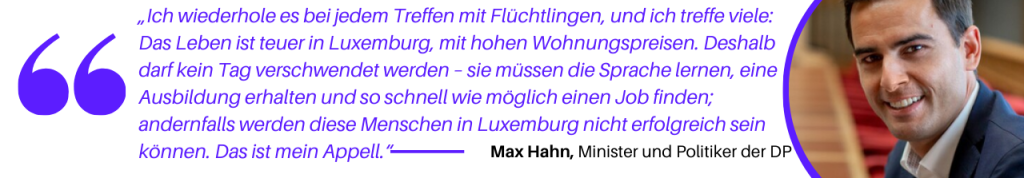 Jedoch, wenn Minister Hahn sagt: „Wir wissen, dass Wohnen in Luxemburg teuer ist. Für alle in Luxemburg: Luxemburger, Nicht-Luxemburger und ja, das gilt auch für Flüchtlinge“, berichten viele Bürger von einem Verlust an Vertrauen und Zuversicht. Als Minister für Familie ist es seine Verantwortung, nicht nur die Herausforderungen anzuerkennen, sondern auch konkrete Lösungen zu zeigen.