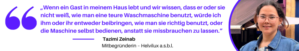 Die Sekretärin und Mitbegründerin von Helvilux asbl, Frau Tazimi Zeinab, erklärte: