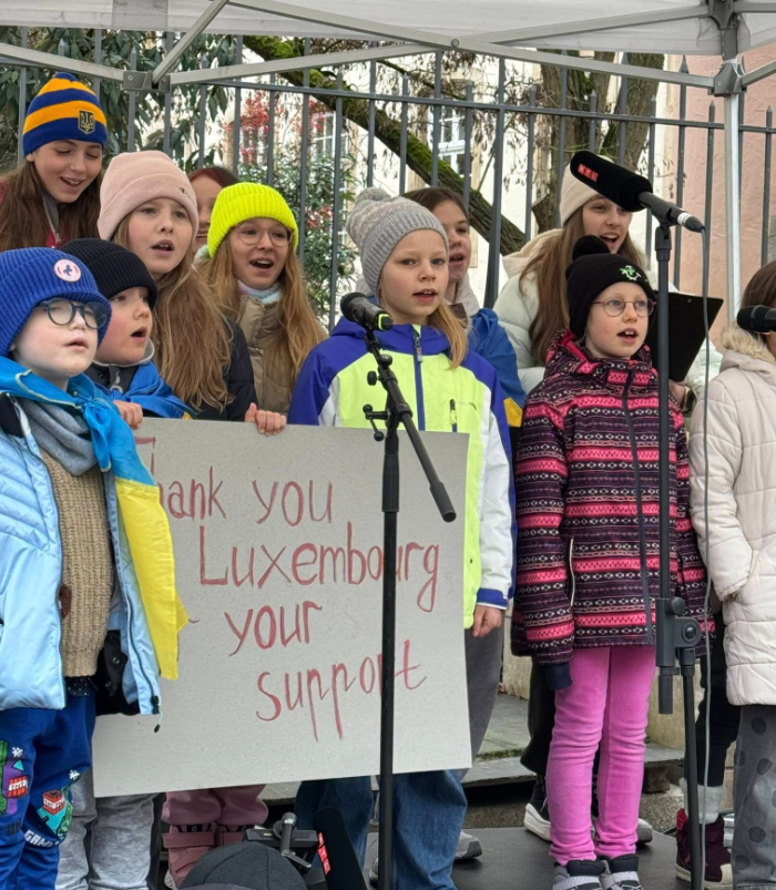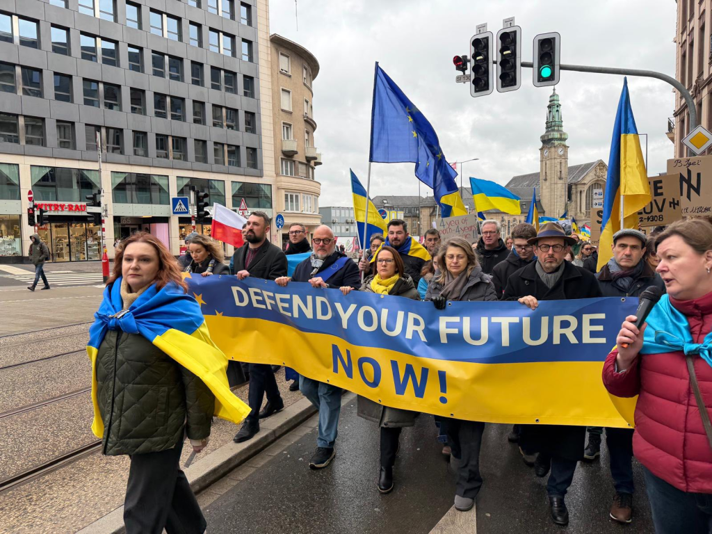 Heute (21. Februar 2026) versammelten sich in Luxemburg-Stadt bei einem von LUkraine asbl organisierten Solidaritätsmarsch Hunderte Unterstützer und Familien auf der Place de Clairefontaine, um der Opfer des Krieges zu gedenken.