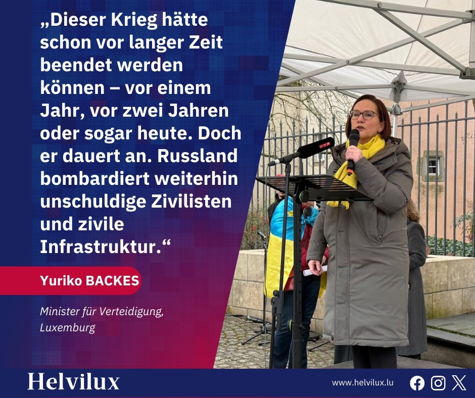 In einer emotionalen Ansprache betonte die luxemburgische Verteidigungsministerin Yuriko Backes, dass der Konflikt weitreichende Auswirkungen über die Grenzen der Ukraine hinaus habe.