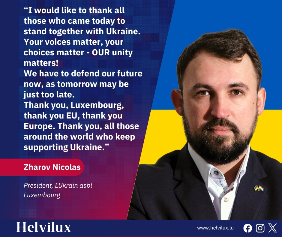 The event concluded with remarks from Zharov Nicolas, President of LUkrain asbl, who expressed gratitude to everyone supporting Ukraine. He stated, “I would like to thank all those who came today to stand together with Ukraine. Your voices matter, your choices matter our unity matters. We must defend our future now, as tomorrow may be too late. Thank you, Luxembourg, thank you European Union, and thank you to all people around the world who continue supporting Ukraine.”